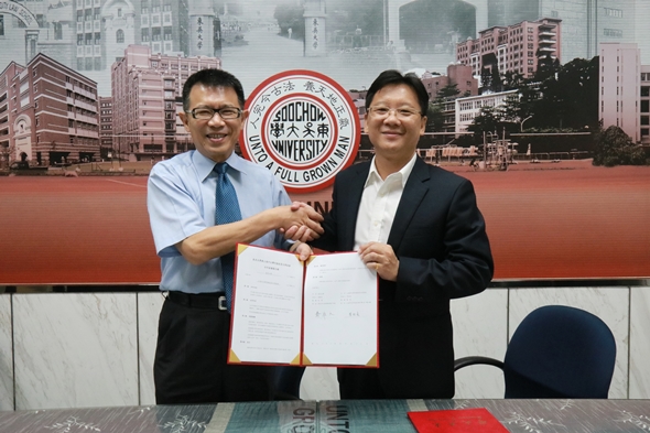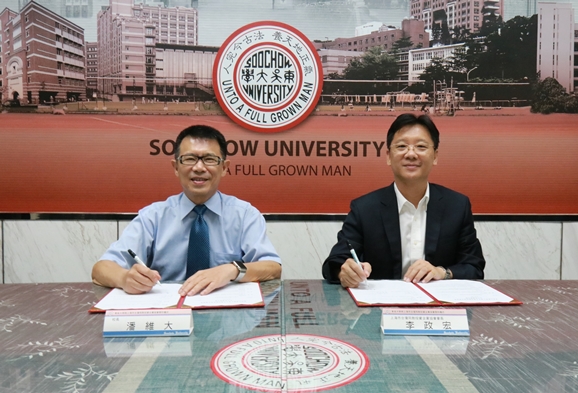 為幫助學生提早歷練職場,藉由實習銜接就業,本校於9月13日(星期四)由潘維大校長與上海市臺灣同胞投資企業協會李政宏會長在雙溪校區A111會議室,共同簽訂境外實習合作協議備忘錄。期望藉由雙方的合作,讓東吳學子有更優質保障的境外台資企業機構,進行實習,無縫接軌就業。