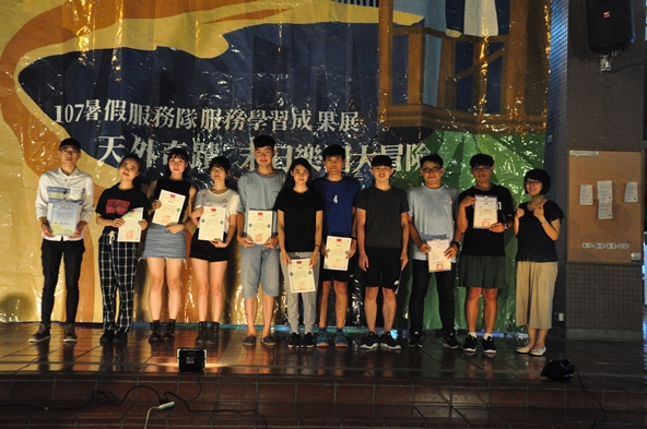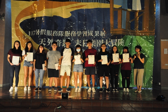 本校107年暑假服務隊計有5支國內隊及3支國外隊於各地進行服務,社團同學以實際行動關懷社會弱勢,從服務及反思過程中,體驗人生的意義。靜態展於9月17日至27日於雙溪藝廊展出,而動態的聯合服務學習成果發表會則於9月21日晚上在望星廣場盛大展開,超過80位同學蒞臨現場共襄盛舉。