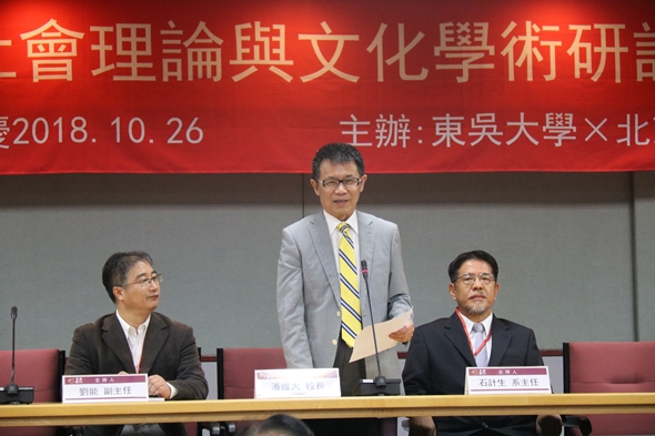 本校社會學系於今(107)年邁入第45周年的里程碑,為此特別舉辦一系列活動慶祝,以107年10月26日在外雙溪校區綜合大樓國際會議廳與北京大學社會學系合辦之「兩岸社會理論與文化」學術研討會作為開場,邀請本校潘維大校長、社會學系石計生主任及北京大學社會系教授劉能副主任共同揭開序幕。