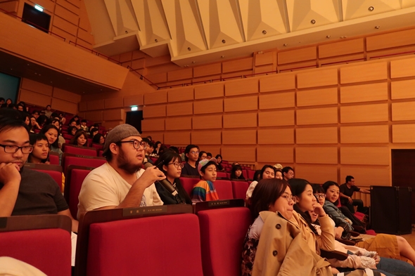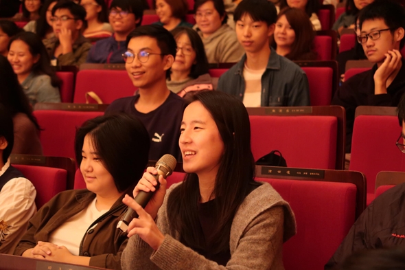 演出結束後,演員們來到舞臺前和同學們分享讀劇計劃的意義。女主角表示,讀劇的形式使演員沒有背台詞的壓力,反而能夠更加集中精力在表演的互動性上,能讓劇本角色更真實地互相交流。同時,這種擺脫了模式化背稿的演出方式讓每場演出都呈現出不同的狀態,觀衆反應也為現場營造獨特的氛圍,相輔相成,一同進行藝術的再創作。
