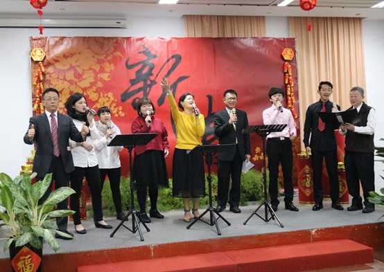 團拜尾聲由本校黃寬裕牧師帶領在場全體教職員祝禱,願師生及行政團隊能同心合一,身心靈都能獲得平安喜樂;隨後在全體熱情合唱〈明天會更好〉的歌聲中,在新的一年持續為了更好的東吳大學打拚!